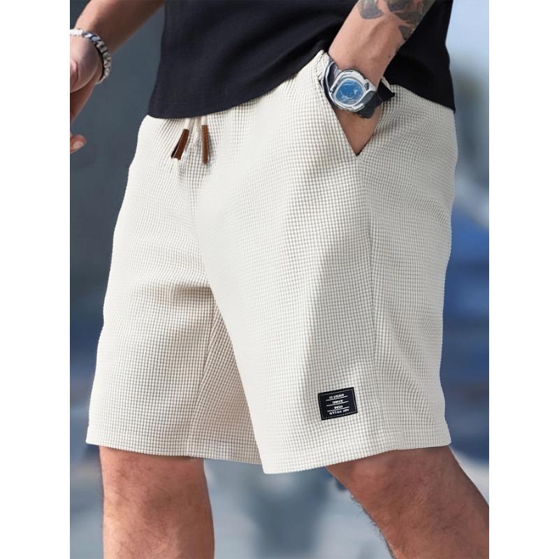 Herren Beigefarbene Waffelstrick Karierte Shorts Lässige Hose mit Kordelzug cm beige
