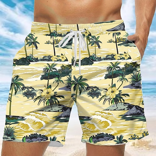 Per uomo Albero di Cocco Piante Tropicali Costumi da bagno Pantaloncini da mare Pantaloncini da Surf Misura del girovita medio Stampa 3D Hawaiano Surf Ferie Spiaggia Coulisse con fodera in rete