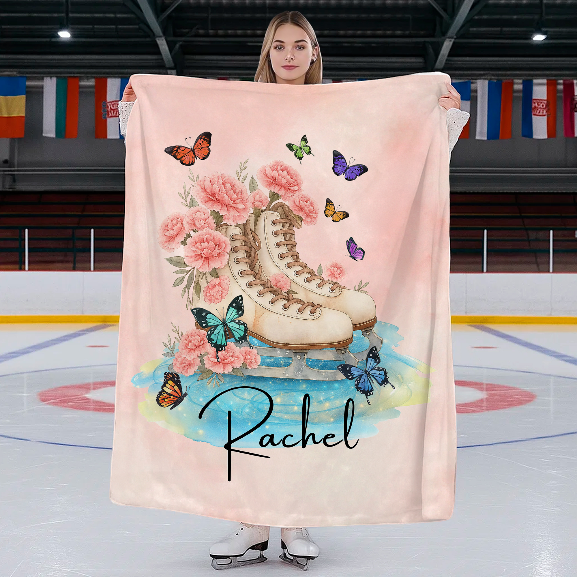 Nacimiento Personalizado Flor Patines de Hielo Suave manta con nombre Día del Juego Cumpleaños Regalo de Navidad para los amantes del patinaje artístico Hijas nietas