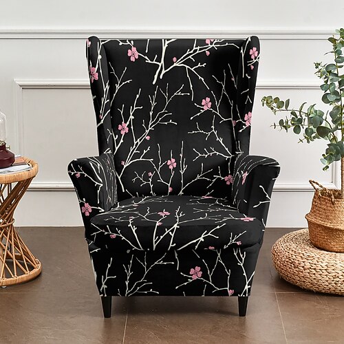 Fodera elasticizzata per poltrona con schienale alto, fodera in poliestere con stampa floreale/a righe/geometrica per poltrona, protezione decorativa rimovibile per mobili