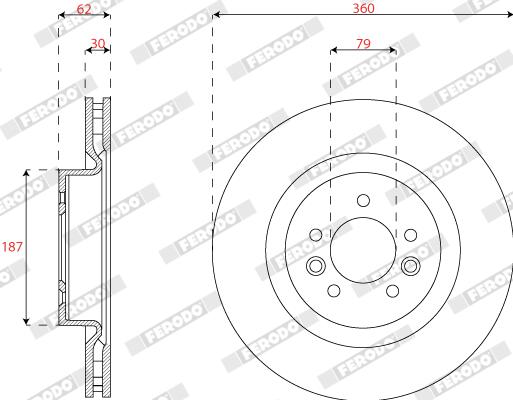 FERODO Bremsscheibe DDF2635C-1 vorne rechts links belüftet 360mm für LAND ROVER LR038934