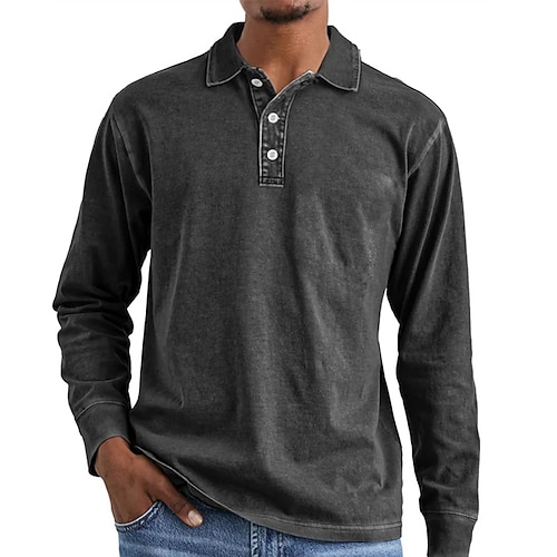 Per uomo Polo Business Maglia da golf Streetwear Casuale Bavero Manica Lunga Essenziale Moderno Semplice Bottoni Primavera Autunno Tutte le stagioni Vestibilità regolare Nero Bianco Blu Blu marino