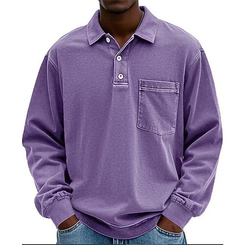 Per uomo Polo Maglia da golf Casuale Streetwear Bavero Manica Lunga Essenziale Moderno Semplice Tasca Bottoni Primavera Autunno Vestibilità regolare Blu Viola Nero Blu marino Fuschia Marrone Polo