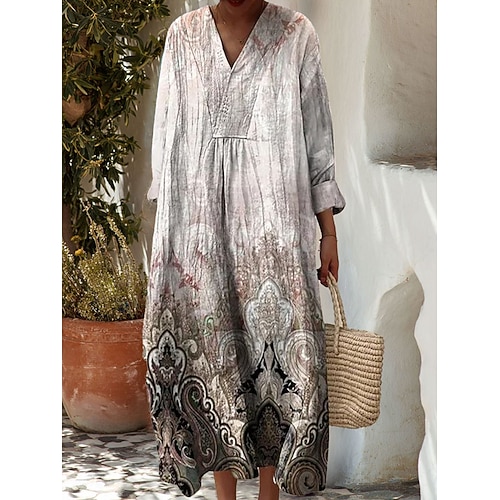 Per donna Abito maxi Vestito Estivo Abito a trapezio Casual Spiaggia Ferie Vestibilità comoda Ombre Grafico Geometrico Manica Lunga Scollo a V Viola Verde Grigio Estate Primavera Autunno