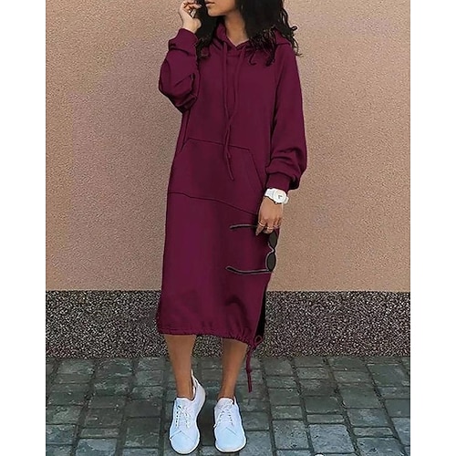 Per donna Abito Lungo Maxi Abito Abito con Cappuccio Vestito Casual Abito Invernale Elegante Moda Moderno Quotidiano All'aperto Abito Invernale Vestibilità comoda Semplice Manica Lunga Con Cappuccio