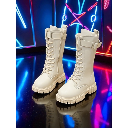 Scarpe da bambino ispirate a pop star coreane - stivali da combattimento in similpelle bianca con cinturino con fibbia, ideali per performance, feste e outfit alla moda