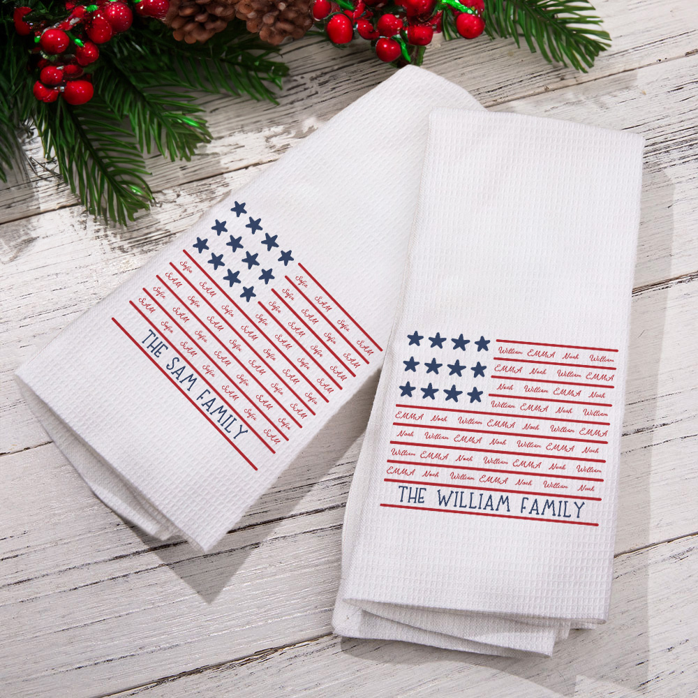 Personnalisé 1-8 Noms de famille Drapeau Gaufrier doux avec texte Décor de cuisine Patriotique 4 juillet Independence Day Cadeau pour Famille Ami