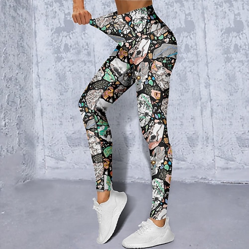 Per donna Ghette Sports Gym Leggings Pantaloni da yoga Elastene Verde Grigio Verde scuro Leggings corti Geometria Fasciante in vita Sollevamento dei glutei Abbigliamento Abbigliamento Yoga Fitness
