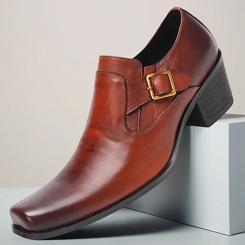 stivaletti chelsea da uomo in similpelle verniciata marrone con dettaglio a catena: calzature comode e alla moda per eventi formali e uscite informali