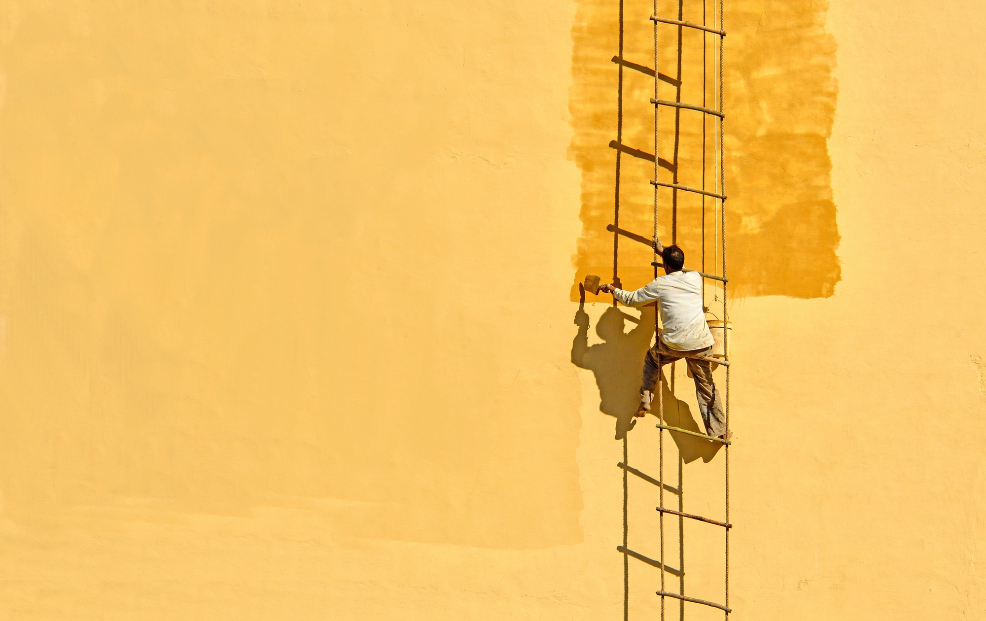 Fototapete PAPERMOON "Photo-Art ANETTE OHLENDORF, DER ANSTREICHER", bunt, B:5,00m L:2,80m, Vlies, Tapeten