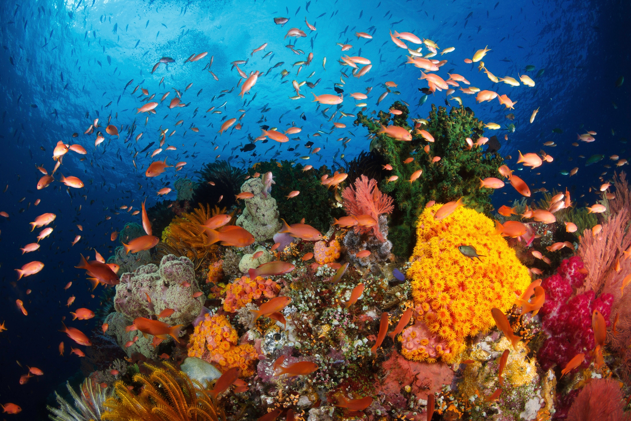 Papermoon Fototapete "UNTERWASSER-WELT-FISCHE KORALLE SEE MEER TIERE OZEAN" bunt B/L: 4mm x 2,6mm, Bahnen: 8 Stk. St.