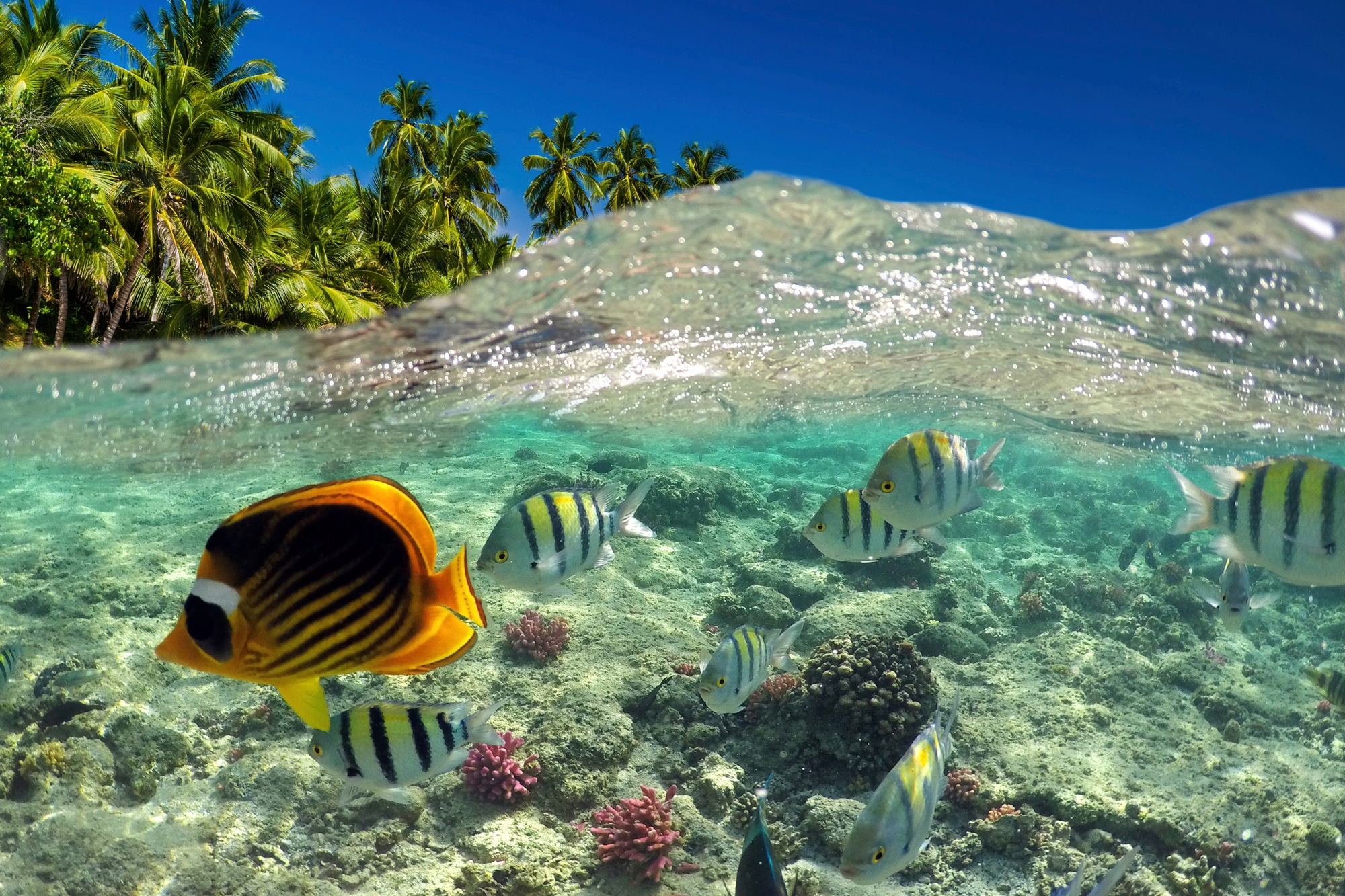 Papermoon Fototapete "UNTERWASSER-WELT-FISCHE KORALLE SEE MEER TIERE OZEAN" bunt B/L: 3,5mm x 2,6mm, Bahnen: 7 Stk. St.