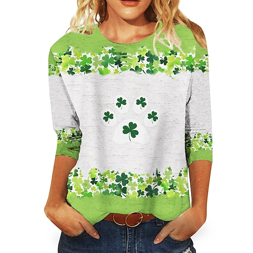 Giorno di San Patrizio Festa di San Patrizio Per donna Maglietta Foglia Giorno di San Patrizio Tunica Manica Corta Girocollo Top lunghi Ferie Weekend Stampato Verde primavera Bianco Verde chiaro
