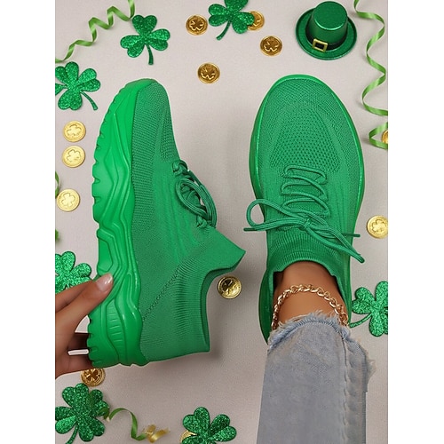 scarpe da ginnastica Flyknit verdi da donna - scarpe casual comode con lacci, ideali per eventi di San Patrizio, passeggiate quotidiane, commissioni all'aperto e riunioni informali
