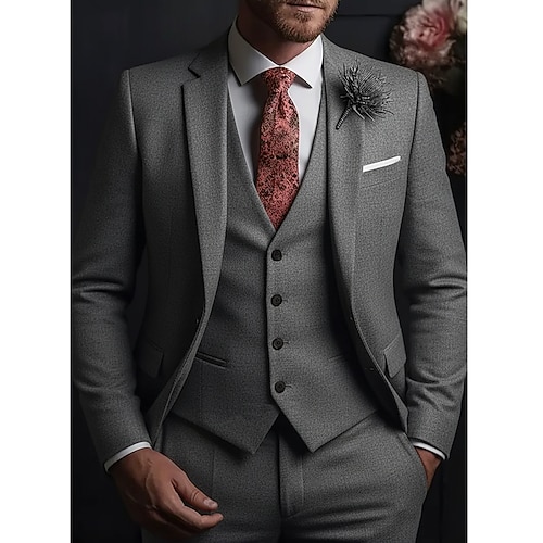 Uomo Matrimonio Matrimonio primaverile Completi Bavero sciallato Collo a scialle Blu Cáqui Escuro Quotidiano Affari Tinta unita Taglie Forti 3 pezzi Monopetto a un bottone