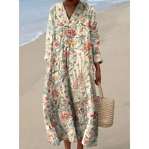 Per donna Abito maxi Abito a Tubino Casual Quotidiano Uscire Vestibilità comoda Floreale Grafico Manica Lunga Scollo a V Marrone chiaro Verde Beige Estate Primavera