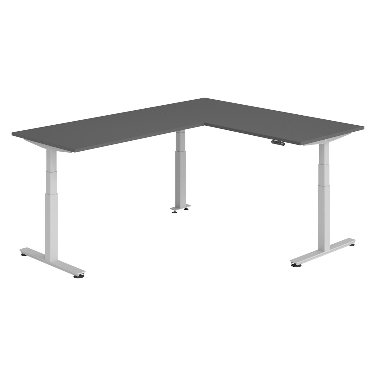 bümö Eckschreibtisch elektrisch höhenverstellbar L-Form: 180 x 240 cm in graphit, Gestell silber - Stehschreibtisch mit Memory-Steuerung,