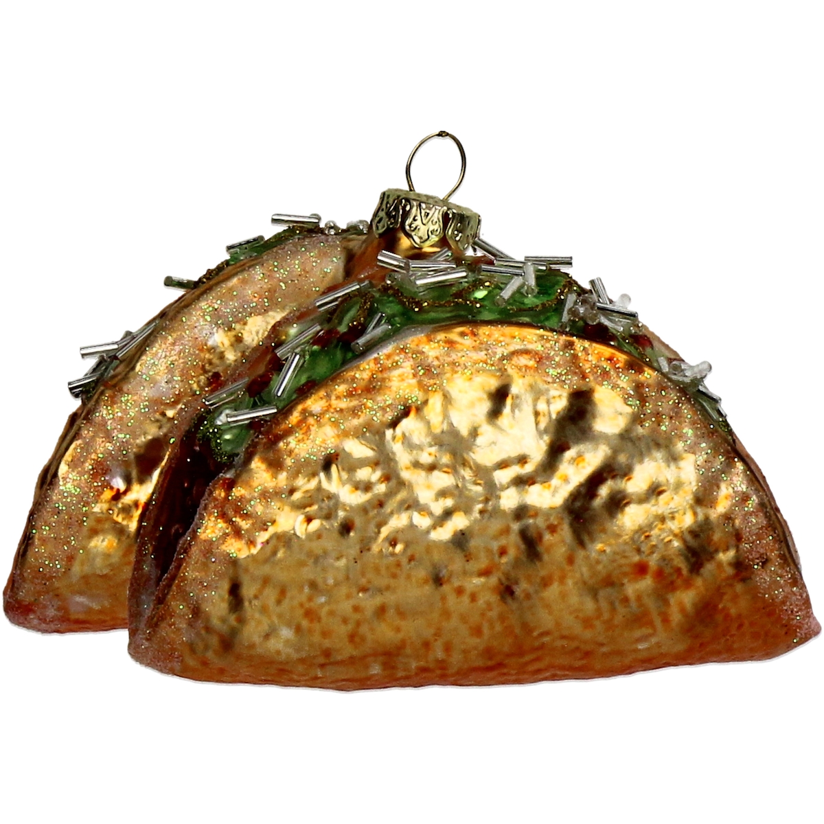 Christbaumschmuck 10cm Glas Taco Figur Handbemalt mit Glitzer Weihnachtsbaum Anhänger Weihnachten Christbaumanhänger Weihnachtsbaumschmuck Hellbraun