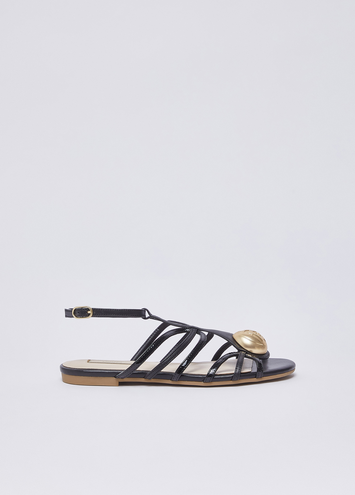 Liu Jo Sandales Plates En Cuir Et Vernis, Noir, 36