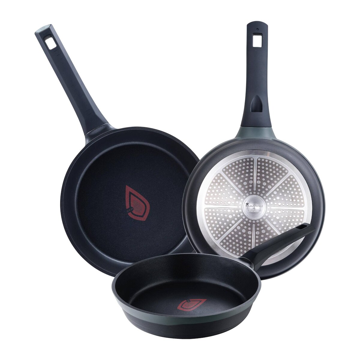 Masterpro - 3er Set Pfannen Ø20/Ø24/Ø28 cm aus Gussaluminium mit Antihaftbeschichtung und Soft-Touch-Griff GASTRO REECO