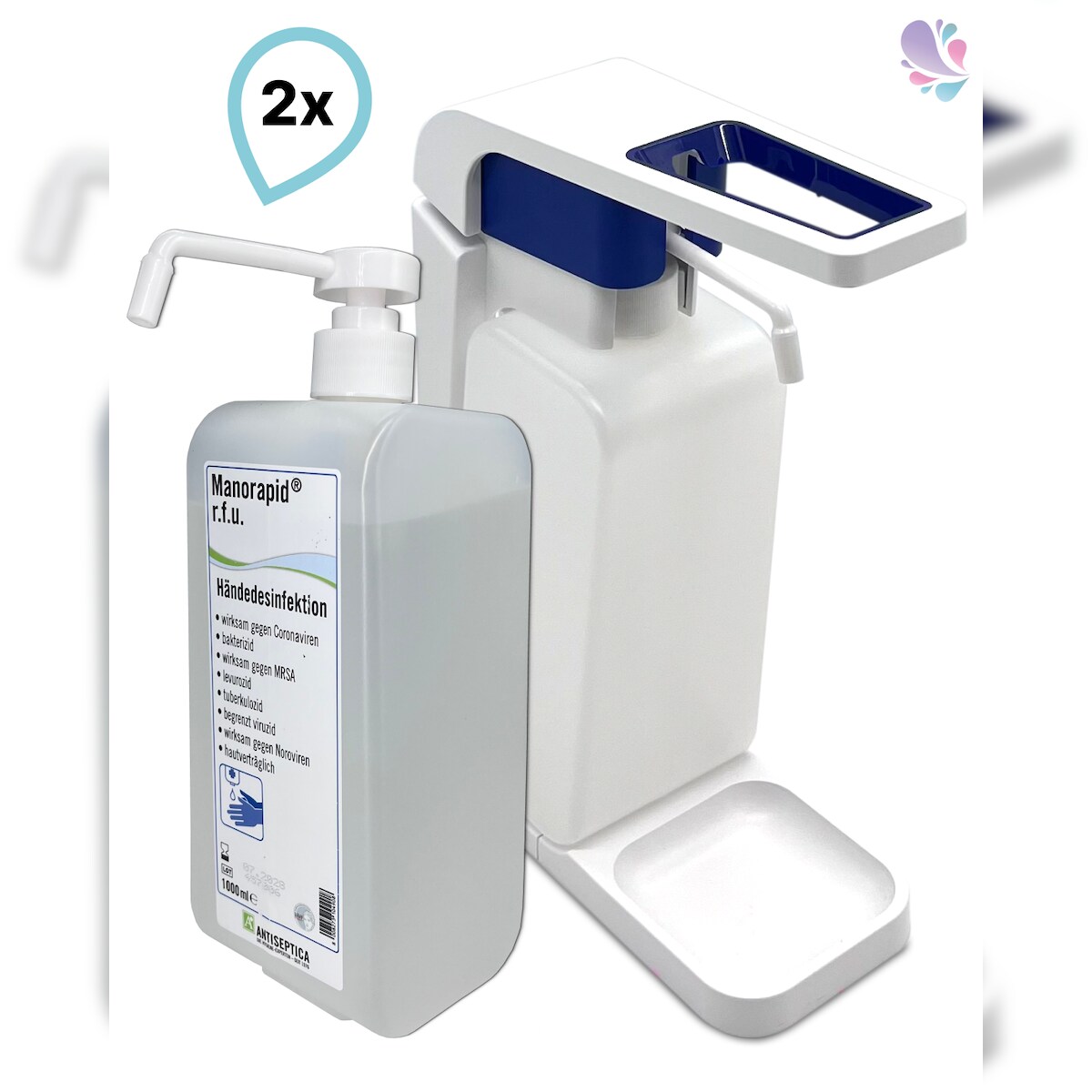 SET: Blanc Hygienic Hebelspender 1.000ml + 2x 1 Liter Haut- und Händedesinfektion mit vormontierter Pumpe