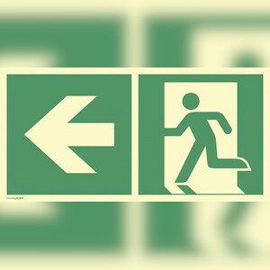 Notausgang links Pfeil links, Kombi,ISO 7010,Kunststoff,nachl.,160-mcd,400x200mm