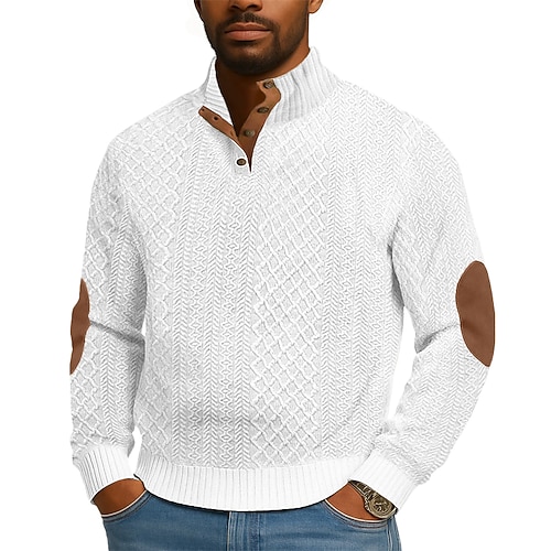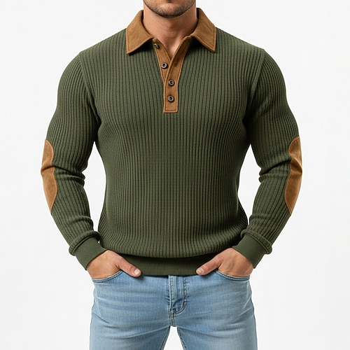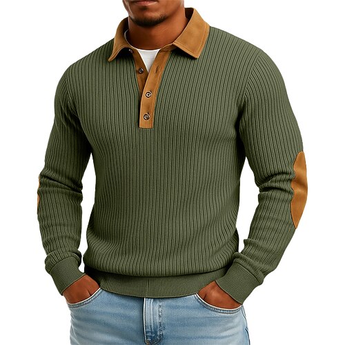 Per uomo Maglia Maglione Felpa con cappuccio abbottonata Maglia a coste Verde militare Borgogna Blu marino Cachi Colletto Polo Semplice Patchwork Blocco di colore Testurizzato Casuale Quotidiano