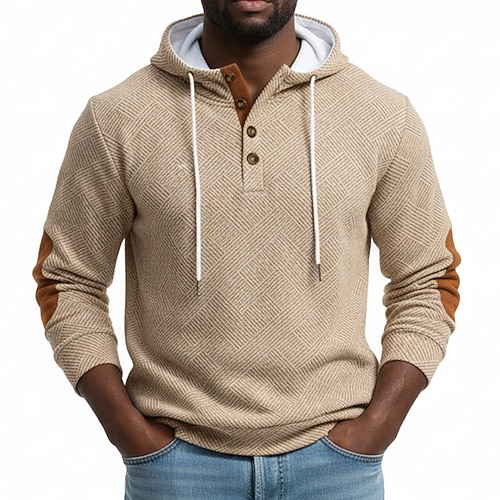 Per uomo Jacquard Felpa con cappuccio Maglione Felpa con cappuccio abbottonata Bianco Marrone Cachi Grigio chiaro Con Cappuccio Semplice Patchwork Blocco di colore Testurizzato Casuale Quotidiano