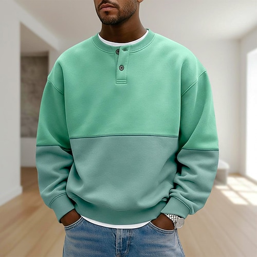Per uomo Felpa con cappuccio Felpa con cappuccio abbottonata Blu Rosa Viola Verde Girocollo Henley Blocco di colori Patchwork Blocco di colore Casuale Quotidiano Sport Outdoor Streetwear Cool