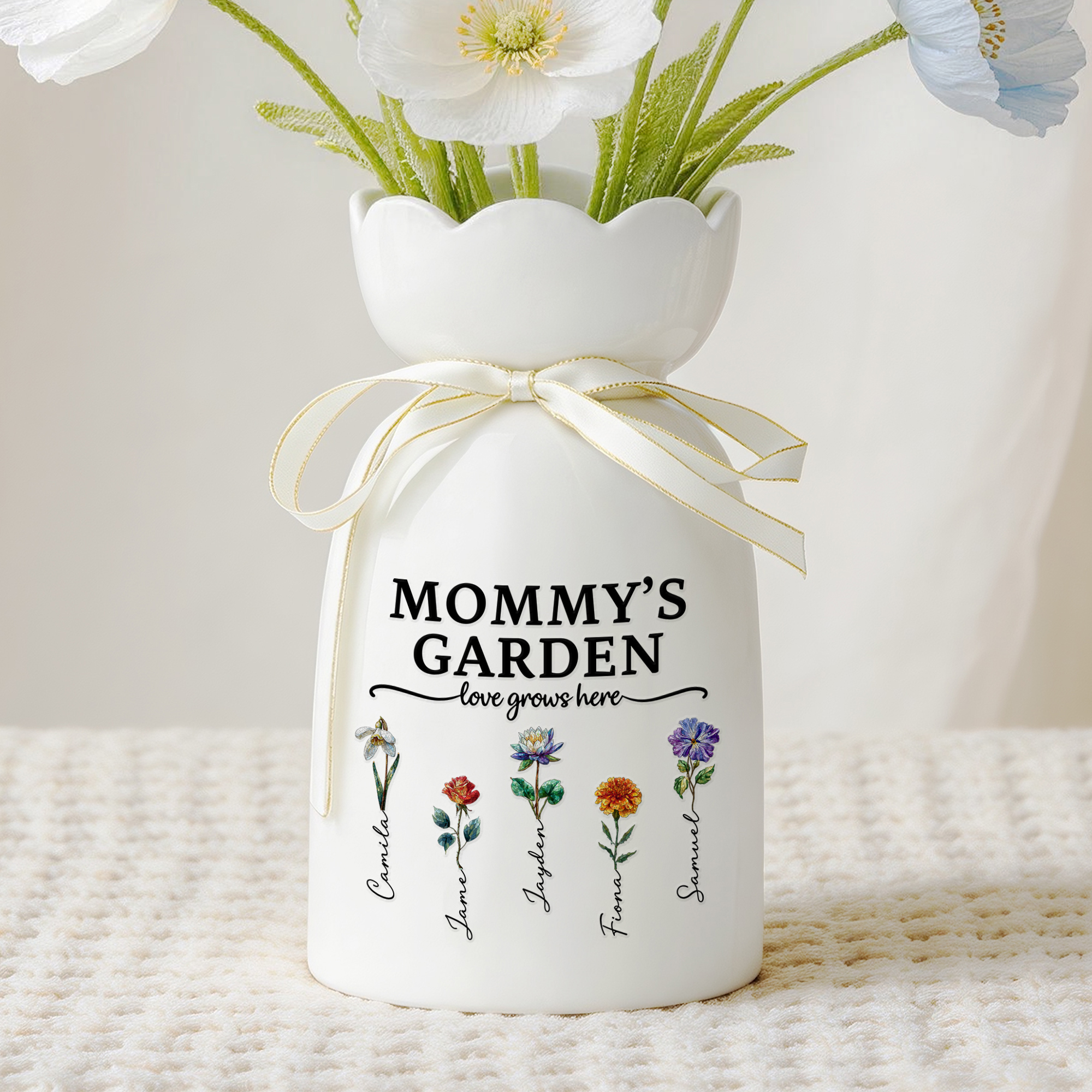 Florero de Cerámica Acuarela Personalizado con los Nombres de los Niños 1-9 Decoración del Hogar Regalo del Día de la Madre para la Abuela y la Mamá
