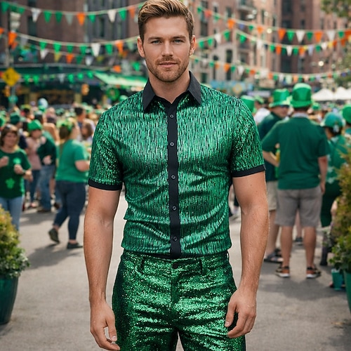 San Patrizio 2026 Disco Anni '80 Blusa / Camicia Disco Costume Per uomo Costume di Carnevale Halloween Carnevale Mascherata Performance Evento / Festa Palcoscenico Adulti Camicia Primavera Estate