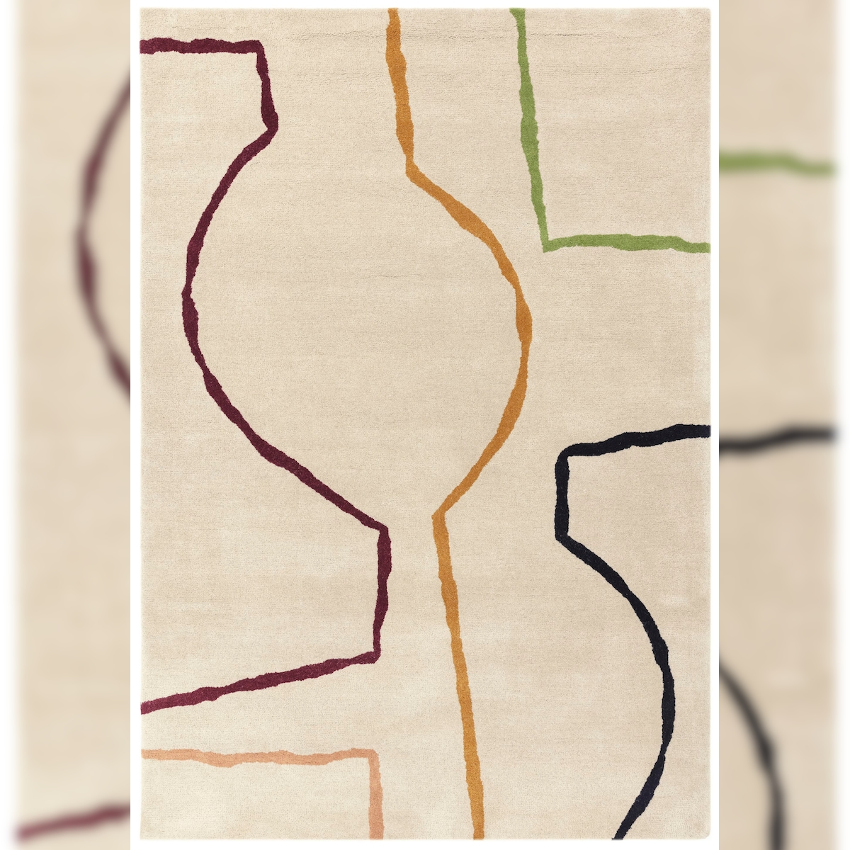Schurwollteppich Handarbeit Modern | 120x170cm, 12mm Florhöhe | Beige Multicolor | Pflegeleicht | Wohnbereich | ELAN-Omont Kollektion | Kadima Design