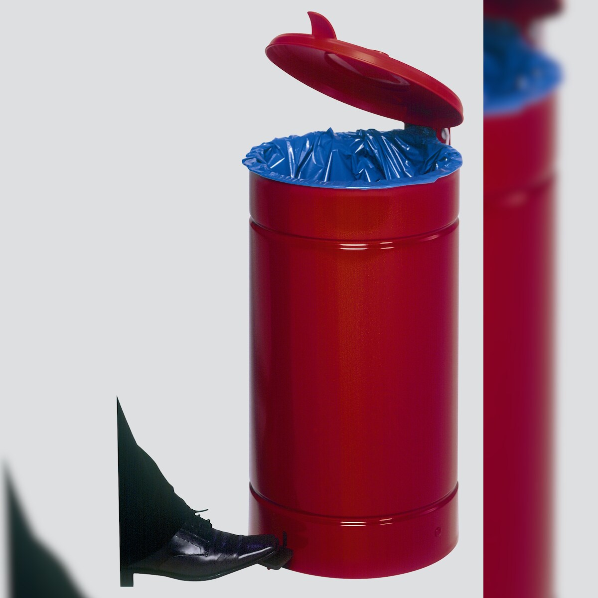 PROREGAL Großvolumiger Tretabfallsammler mit Euro-Pedal | für 60/70 Liter Säcke, HxBxT 70x45x45cm | Verzinkter Stahl | Rot | Mülleimer Abfalleimer