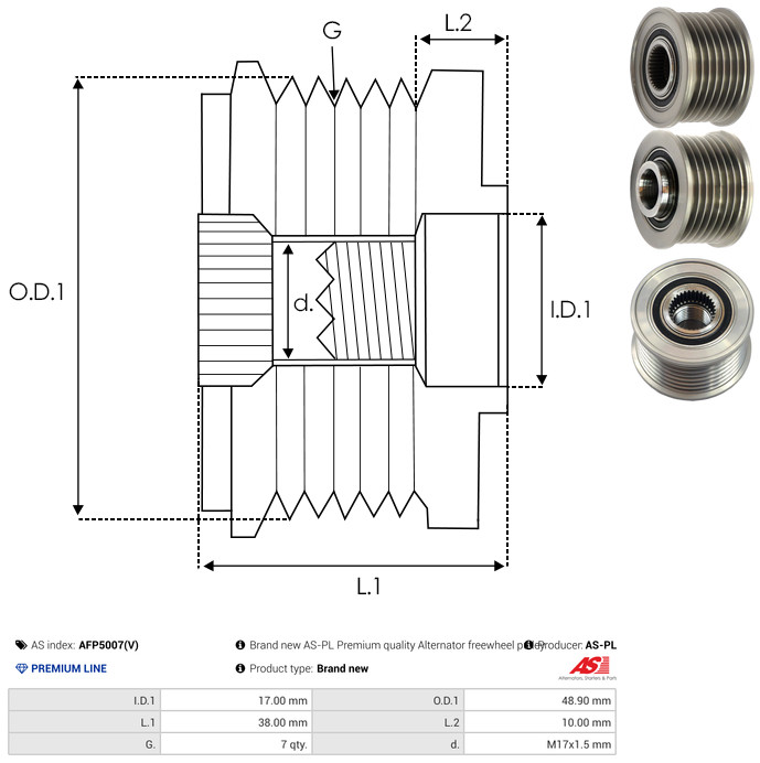 AS-PL Generatorfreilauf AFP5007(V) für MITSUBISHI NISSAN A252C55875 A252C558FE 23151-JG71B