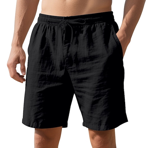 Per uomo Shorts Shorts di Lino Pantaloncini Estivi Shorts da Spiaggia Coulisse Elastico in vita Semplice Comodità Traspirante Lunghezza al ginocchio All'aperto Casuale Quotidiano Vacanza Moda Blu Nero