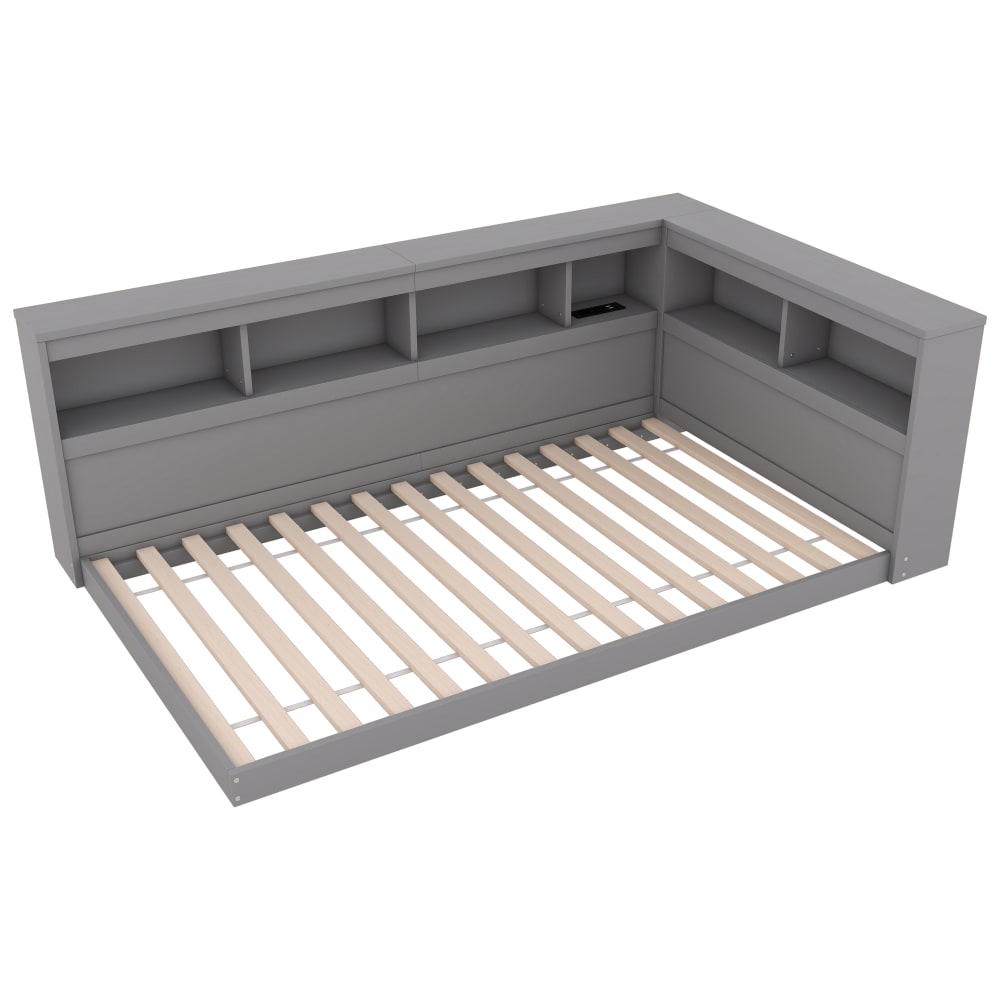 Letto per bambini in MDF grigio 90 x 200 cm con ripiani