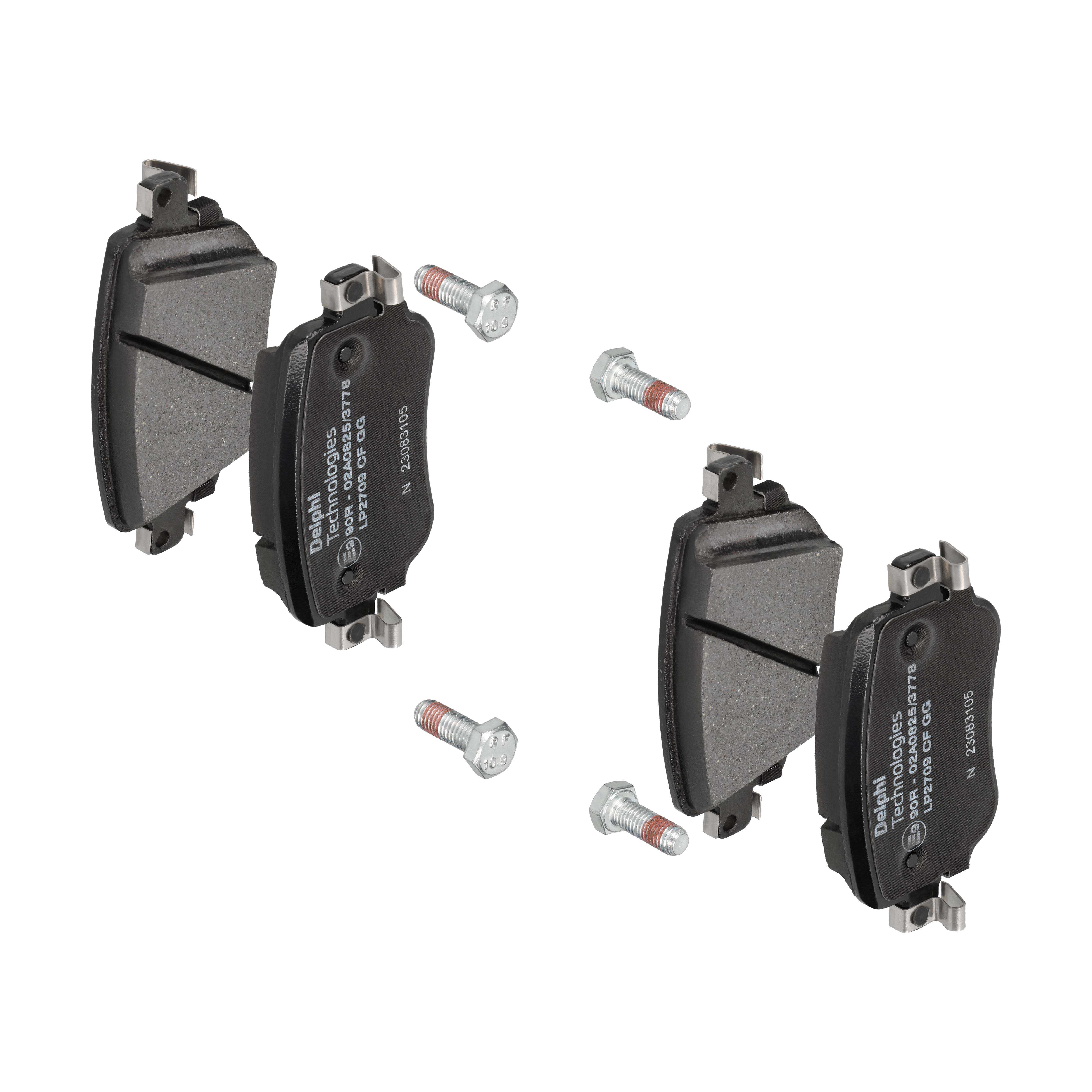 DELPHI Bremsbelagsatz, Scheibenbremse LP2709 hinten rechts links mit Zubehör für SKODA VW SEAT AUDI VAG 5Q0698451F 2Q0698451D 5Q0698451B