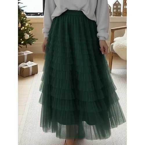 Per donna Linea A Elegante Maxi Misura del girovita medio Gonne Stratificato Inelastico Vinaccia Nero Rosa Marrone Primavera Tulle