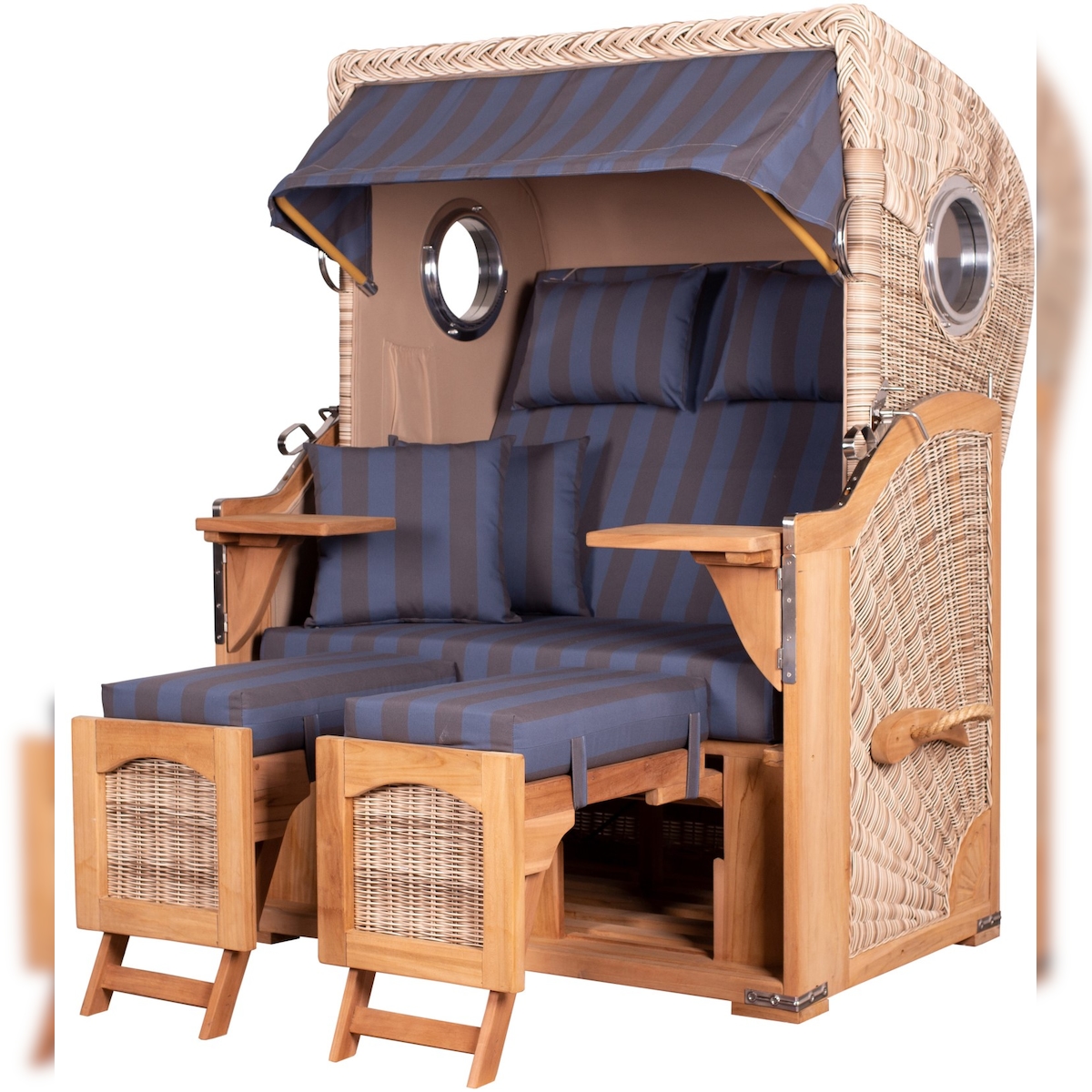 Mr. Deko Strandkorb - bene living - Ammersee Teak Bullauge - PE shell - Modell 582 - inkl. Liftersystem