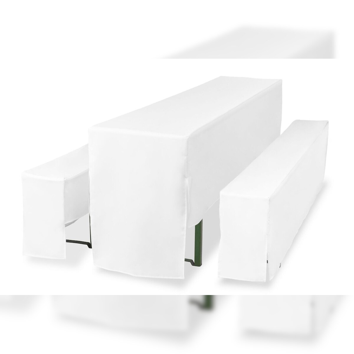 TexDeko Hussen für Bierzeltgarnitur gepolstert 5TLG Set Premium PRO Blickdicht Biertischhussen 220cm (Tischbreite: 50cm, Weiß)