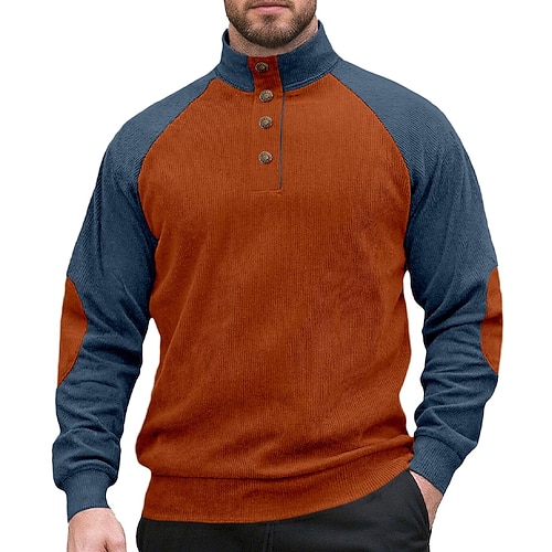 Per uomo Maglia Velluto a coste Felpa in pile Maglione Felpa con cappuccio abbottonata Aalbicocca Nero Verde militare Blu marino Blu Colletto Mao Semplice Patchwork Blocco di colore Testurizzato