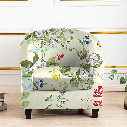 Copripoltrona da club in poliestere con stampa a righe, piante e motivi geometrici per soggiorno, camera da letto e ufficio domestico