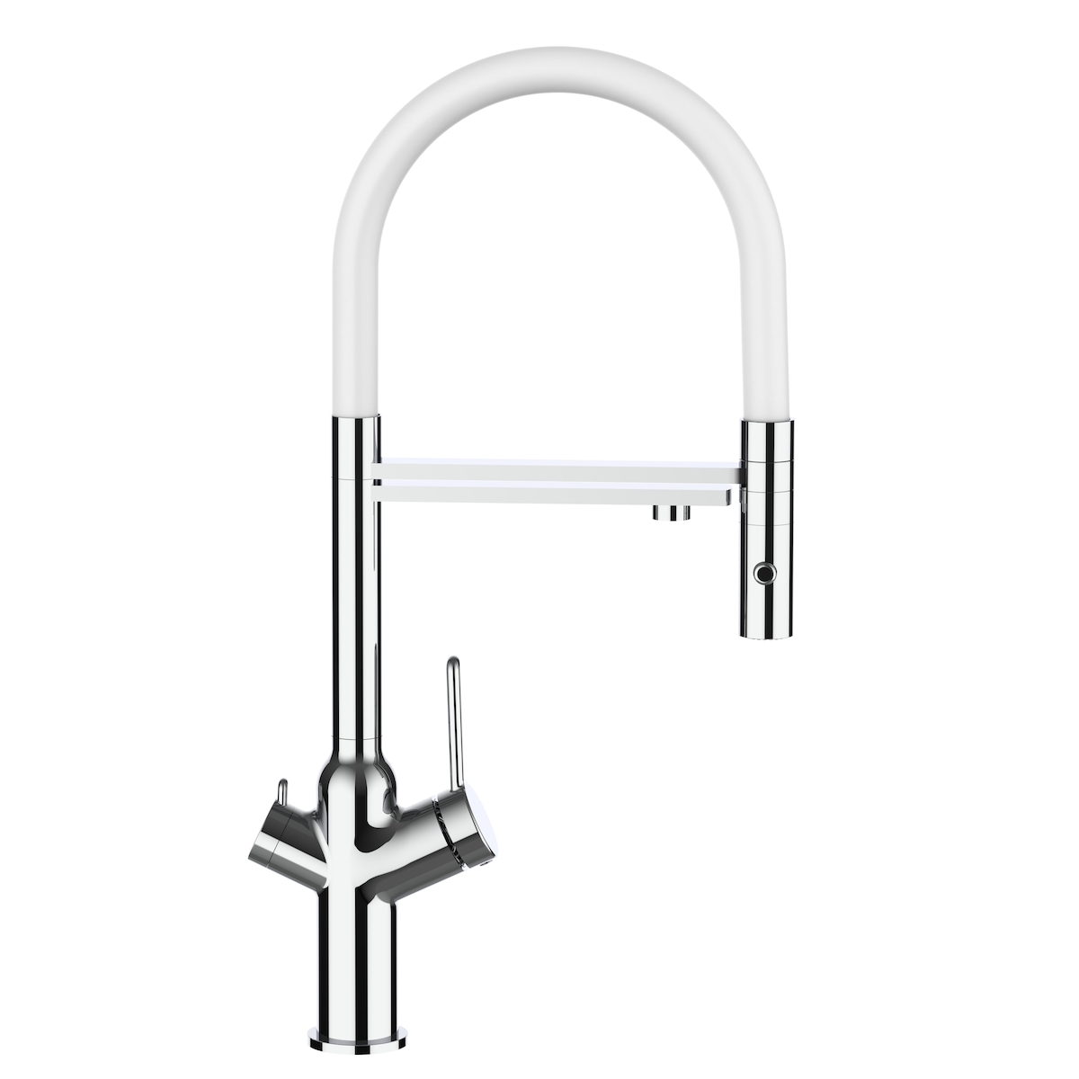 Vizio 4 Wege Wasserhahn Küchenarmatur Spültischmischer BOD, Verchromt, mit 360° schwenkbarem Weiß Auslauf und abnehmbare 2 strahl Handbrause