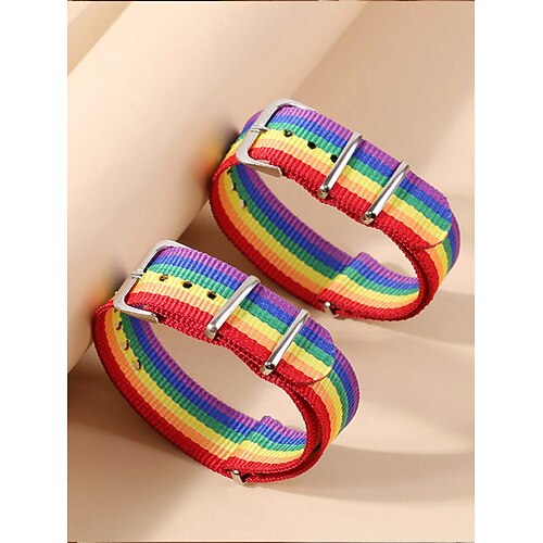 Braccialetto unisex in nylon arcobaleno con fibbia in metallo - braccialetto regolabile per festival LGBT, abbigliamento quotidiano e accessori di coppia