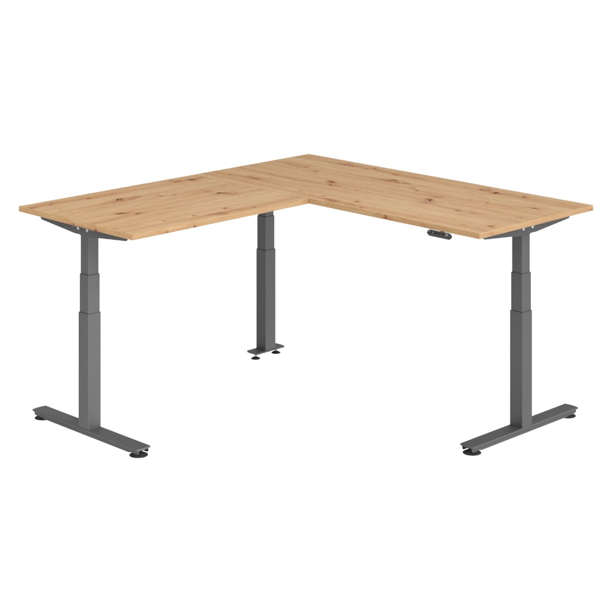 bümö Eckschreibtisch elektrisch höhenverstellbar L-Form: 180 x 200 cm in Asteiche, Gestell graphit - Stehschreibtisch mit Memory-Steuerung,