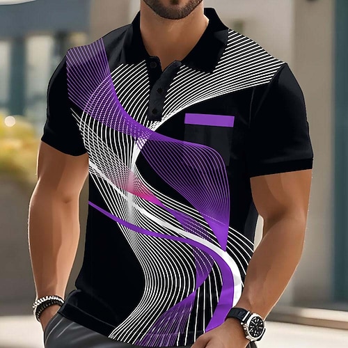 Per uomo Geometrico Linea Polo Manica Corta Magliette polo Camicie con Colletto Business Casual All'aperto Athleisure Abbigliamento quotidiano Bottoni Tasca Stampa 3D Estate Nero Blu