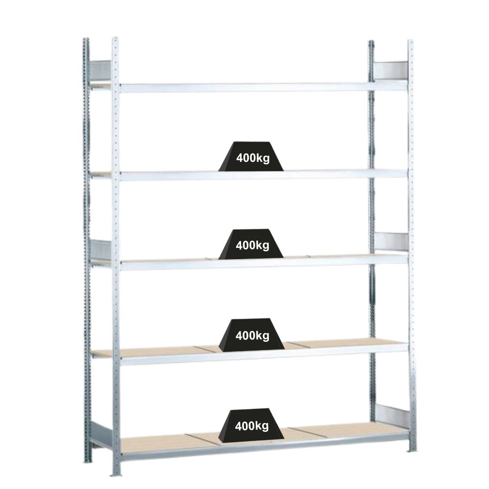 PROREGAL Weitspannregal mit Spanplatten WS 2000 | Grundregal | HxBxT 300x225x80cm | 5 Ebenen | Fachlast 400kg | Verzinkt