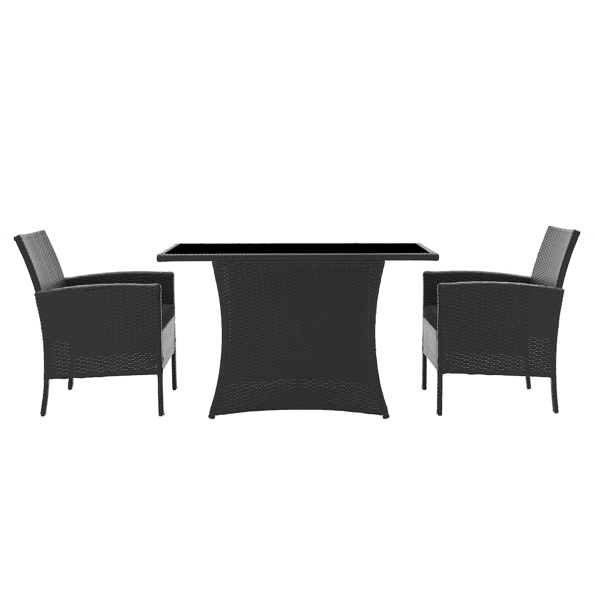 Möbilia Garten Sitzgruppe 3-tlg | 2 Sessel inkl. Sitzkissen, 1 Tisch | Polyrattan | schwarz | 10020012 | Serie GARTEN
