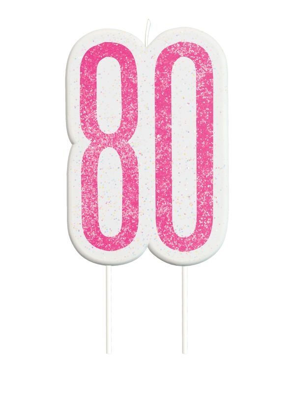 Kerze rosa & silber Zahl 80