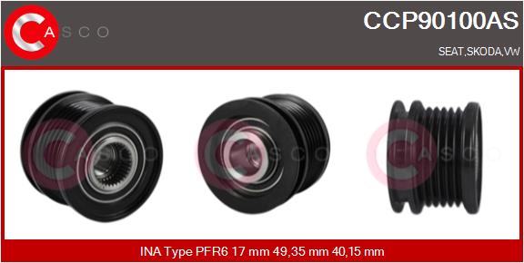 CASCO Riemenscheibe, Generator Universal 49,35mm für FORD VAG IKA 95VW-10344-FA 1669971 95VW-10344-CA CCP90100AS